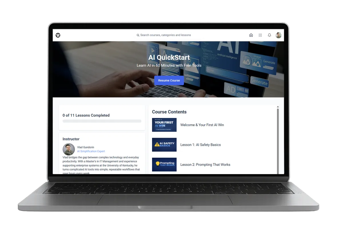 Preview the full Welcome/QuickStart module for free. When you’re ready to save 10+ hours/week, upgrade to unlock templates, labs, quizzes, and the full Masterclass.